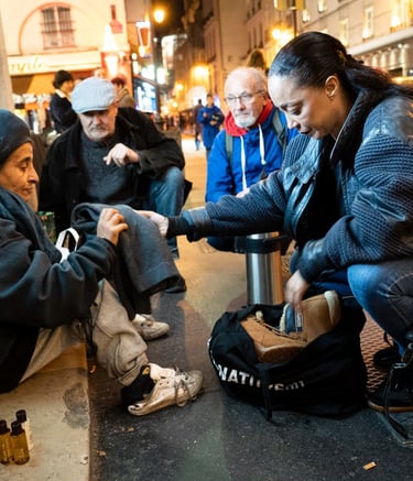 En vous procurant nos encens vous soutenez également des oeuvres caritatives. (sur les photos des bénévoles de ETW (embracing the world) font une maraude au bénéfice de sdf).